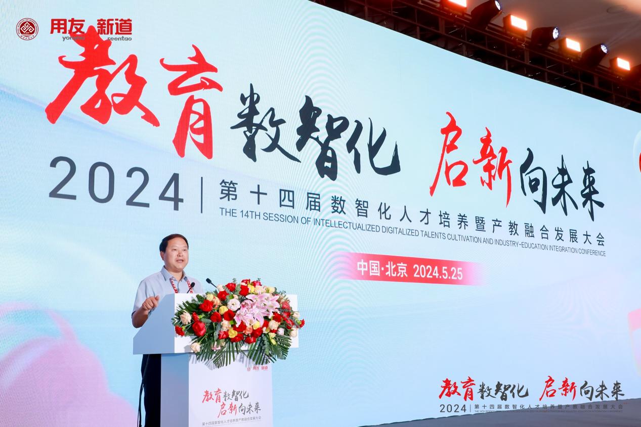 5月25-26日,第十四届数智化人才培养暨产教融合发展大会在北京举行。公司副董事长常新中带领数智财经产业公司经理张召哲、副经理聂蕴等一行四人参加,副董事长常新中受邀作为“数智财经高职高质量发展论坛”主持嘉宾。本次大会由北京工商大学、用友网络科技股份有限公司主办,新道科技股份有限公司承办,来自全国各地的数百家高校和企业专家近3000余人参加。