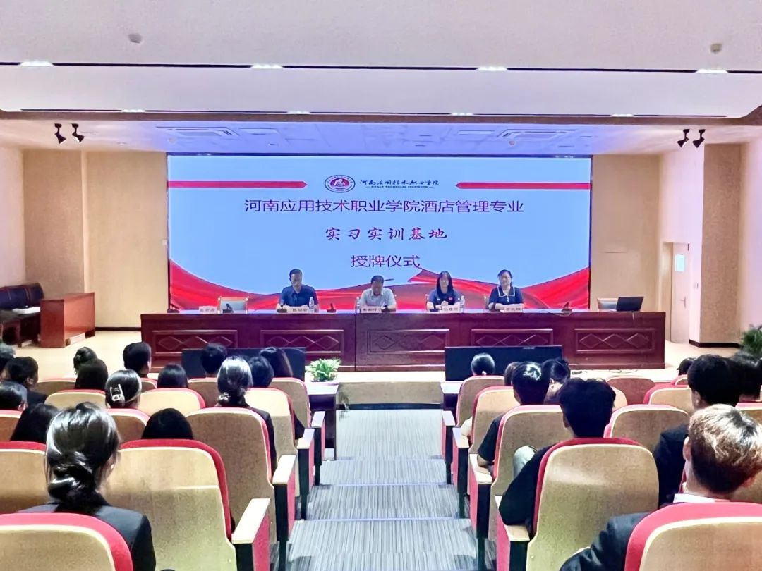 5月17日上午,公司酒店管理专业在开封校区A102举办校外实习实训基地授牌仪式。郑州丹尼斯广场洲际酒店、郑州方特度假酒店、郑州希尔顿酒店、北京环球影城大酒店、上海悦榕庄、上海新世界丽笙酒店、山西潇河新城酒店、江苏园博园丽笙精选酒店、舟山威斯汀度假酒店、宁波喜来登酒店等10余家企业方代表、公司副董事长常新中、校企就业与合作处处长马春燕、304永利集团书记李兆楠等出席授牌仪式,会议由304永利集团经理张召哲主持。