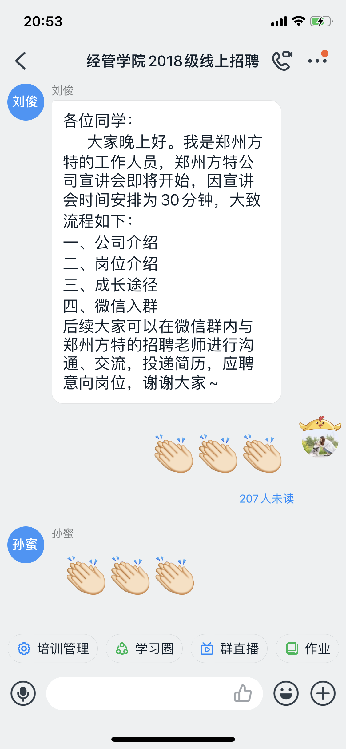 2020年5月15日,304永利集团携手郑州华强文化科技有限公司(方特)面向公司2018级预就业员工开展预就业双选宣讲会。