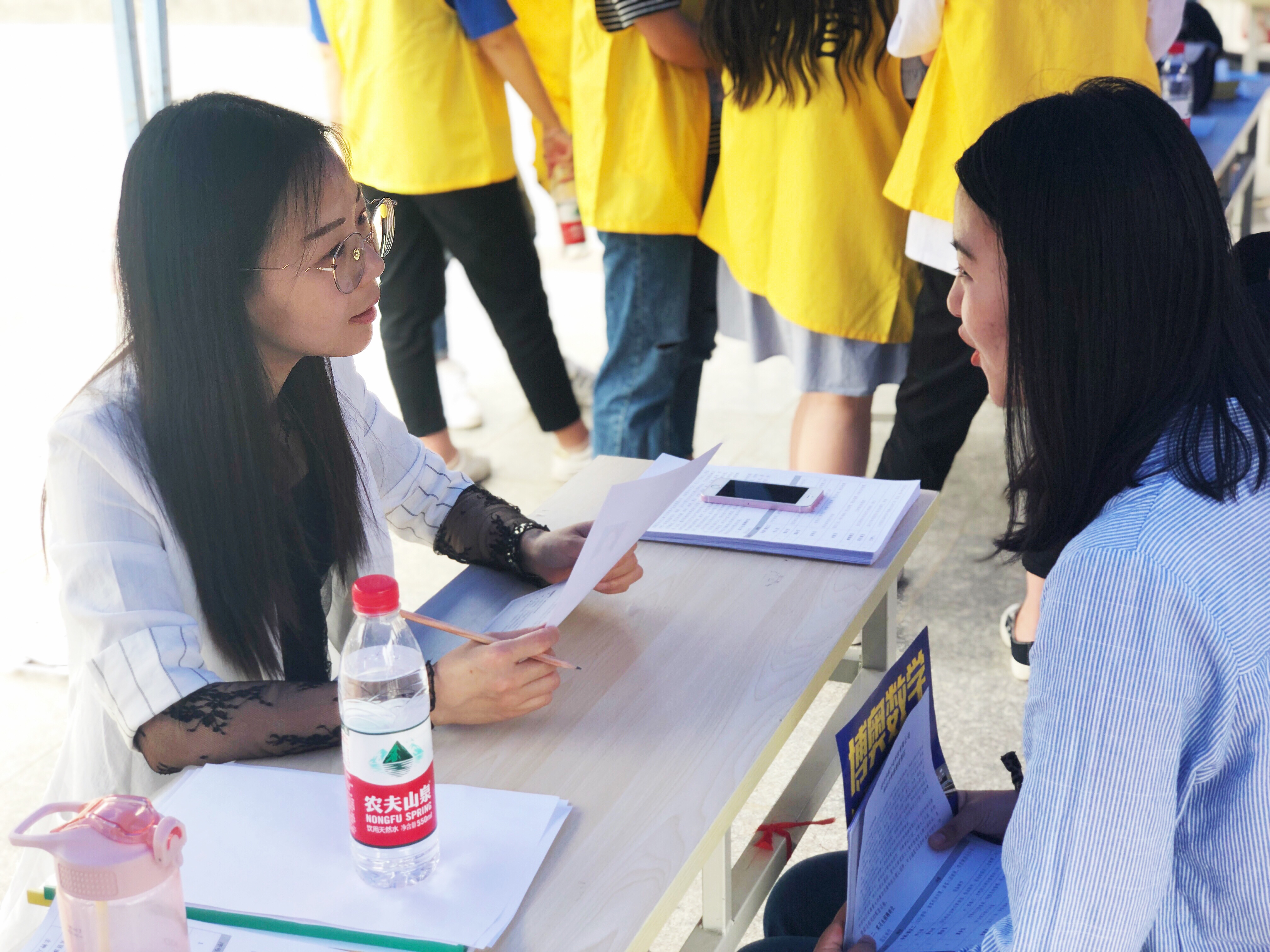 招聘会开始前两小时,2017级志愿者就已经完成了展位的布置。下午13:30,负责承办本次招聘会的304永利集团团总支员工会同学积极协助招聘单位,认真引导员工有序求职,为招聘企业和应聘同学提供了良好、舒适的交流环境。