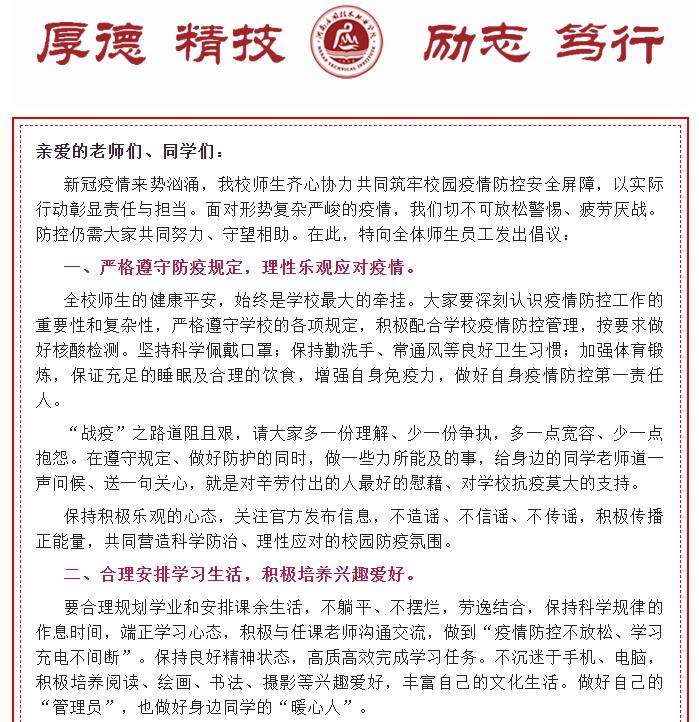 勠力同心共克时艰 携手并肩齐抗疫情 | 致全体师生员工的一封信