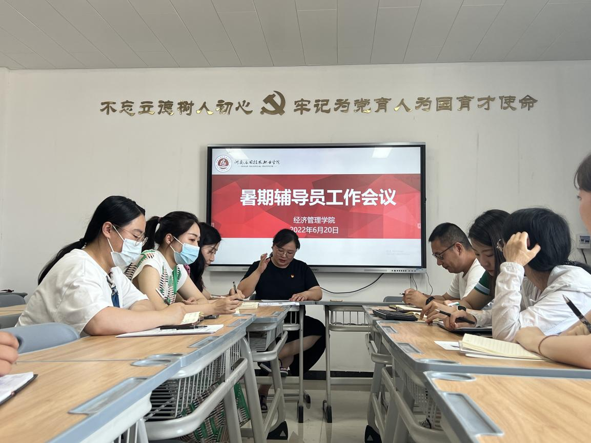 会上,李兆楠对本学期辅导员工作进行总结,就不同年级员工工作提出具体要求。2019级辅导员要继续落实毕业证发放、档案封装邮寄、团组织关系转接等后续工作。李兆楠强调,辅导员是老员工健康成长人生导师、知心朋友,要从一而终做好服务员工成长各项工作,促进老员工顺利毕业、顺利走向社会。毕业并不意味员工工作结束,辅导员还要持续关注毕业生发展动态,充分发挥拓展优秀员工资源。2020级、2021级辅导员要持续推进贫困生家访、校园地贷款、暑期“春雁行动”“向基层报到”等工作。针对具体落实层面,李兆楠提出三点要求。一是做好暑期安全工作,包括出行、防疫、防汛等安全,充分利用线上资源做好员工暑期防汛、防疫、防诈等知识普及工作,时时掌握假期员工行踪动态。二是关注假期员工心理状况,及时做好员工家庭情况调研、心理问题疏导等工作,定期召开心理健康教育主题班会。三是做好“春雁行动”“向基层报到”等活动的宣传动员及落实工作。通过社会实践引导员工上好与实践相结合的“大思政课”,让员工在社会课堂中,受教育、长才干、做贡献。四打造暑期“一班级一特色”主题活动,充分调动青年员工青春活力,为建团百年献礼。本次会议的召开明确了暑期辅导员工作重点,为员工度过一个安全、有意义的暑假提供了有力保障。