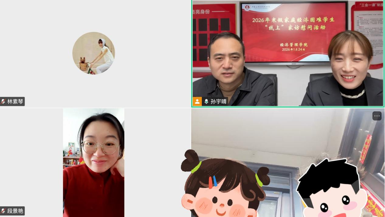 1月24日,304永利集团在A502会议室启动“云端连心·家校共育”线上家访活动。公司党总支书记王倩、经理张召哲亲自带队,与辅导员老师通过视频连线,与多名家庭经济困难员工及其家长进行深入交流。