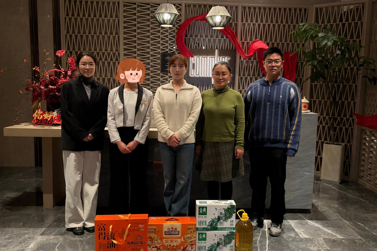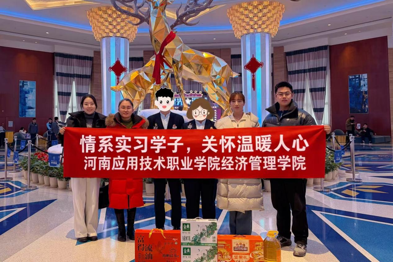 1月25日,公司党总支书记王倩带队,副书记王盼红、资助专员孙宇晴、辅导员赵志浩一同前往郑州洲际酒店、银基国际旅游度假区冰雪酒店等实习单位,实地走访慰问岗位实习的家庭经济困难员工。