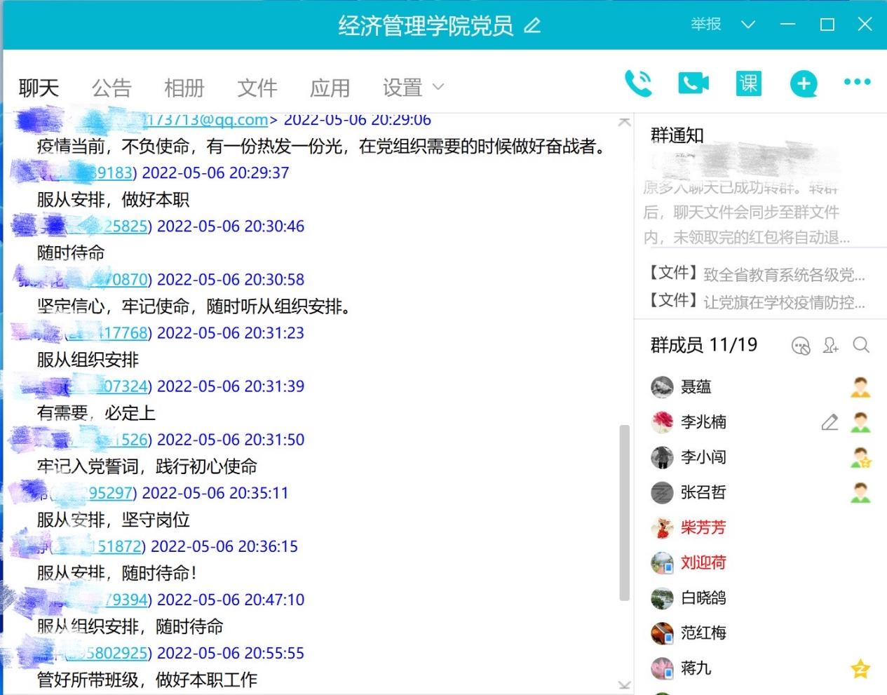 最后,全体党员教师共同学习文件精神,分享近期员工管理、教学工作心得体会,纷纷表示只要党组织需要,定会第一时间响应号召、听从指挥,责无旁贷投身疫情防控攻坚战,做到“守土有责、守土尽责、守土担责”。