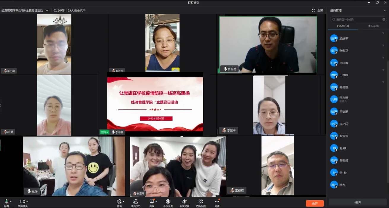 为进一步彰显党员的责任担当和精神本色,让党旗在疫情防控一线高高飘扬,让党徽在疫情防控一线熠熠闪耀,充分发挥基层党组织战斗堡垒作用。2022年5月6日晚,公司党总支开展“让党旗在公司疫情防控一线高高飘扬”线上主题党日活动,会议由党总支书记李兆楠主持。