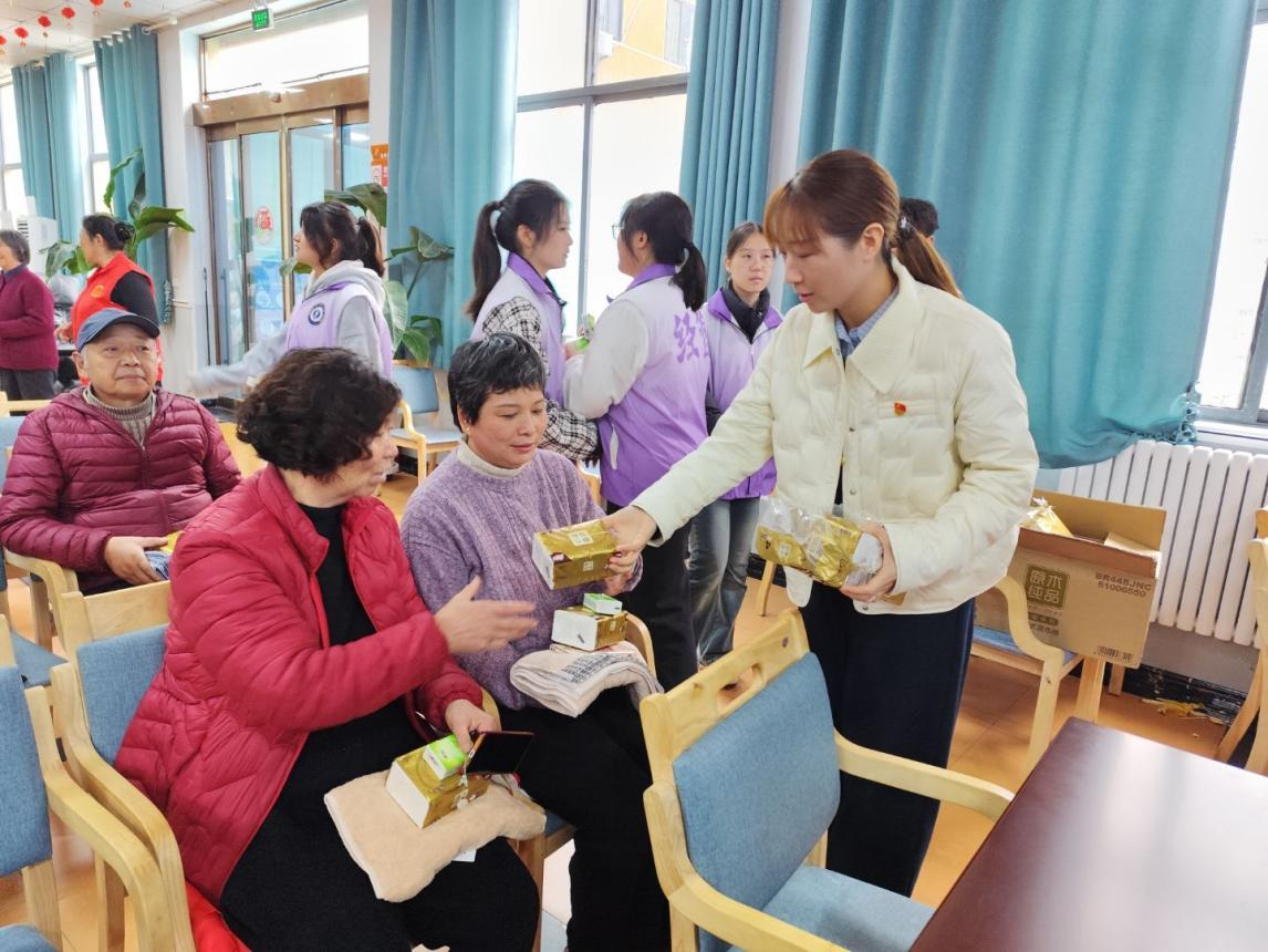 活动中,支部成员提前到达活动现场进行布置。随着老人们陆续到场,师生们纷纷前去做好搀扶和指引入座工作。在公司党总支书记王倩的带领下,大家一一给现场老人分发纸巾、毛巾、水果等慰问品,并送去真挚的节日问候。现场,志愿者同学还为老人们献上精心准备的舞蹈节目——《炙热同行》,精彩的表演赢得现场阵阵掌声,现场氛围温馨、热烈。老人们为同学们的温暖陪伴和志愿奉献表示赞许和感谢。