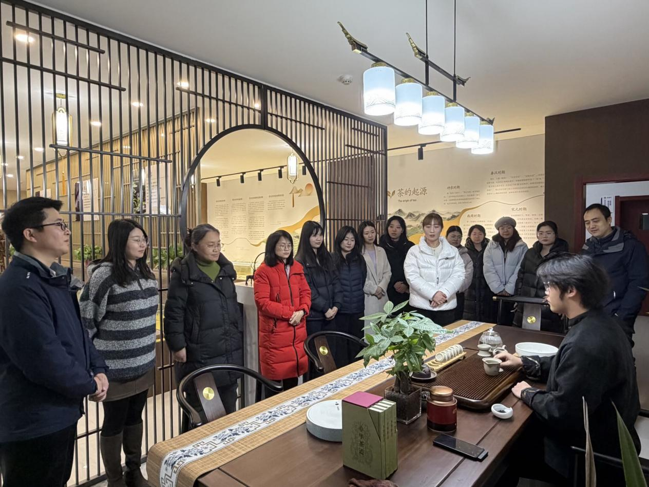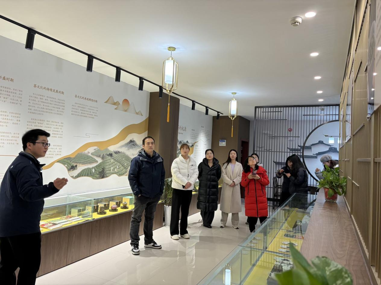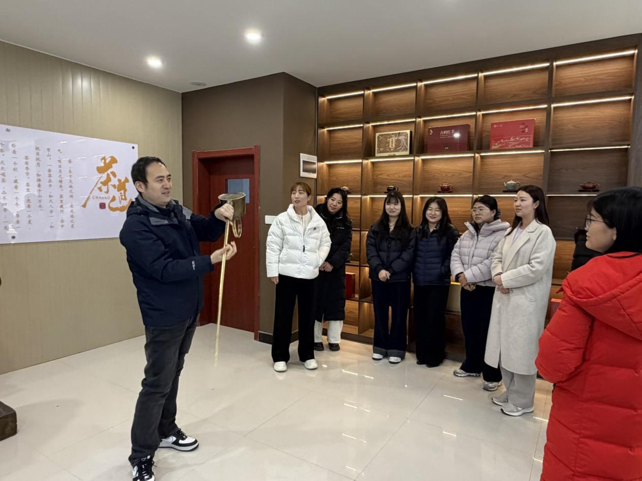 在茶艺文化科普基地,张留洋老师系统讲解了茶文化发展脉络与历史渊源,详细解读六大茶类特质与鉴别方法,分享茶艺礼仪规范与品饮讲究。教师们观摩茶具展品、茶叶标本及茶文化历史展陈,结合酒店管理与数字化运营专业人才培养目标,探讨如何将茶文化元素转化为特色服务项目、课程教学资源及实践教学活动,为专业建设注入文化动能。期间,员工进行非遗长嘴壶茶艺表演,并现场演绎绿茶玻璃杯冲泡、功夫茶艺等经典技法。教师们在温具、置茶、冲泡、奉茶的细致流程中,感受茶道“和、敬、清、寂”人文底蕴,在清雅品茗中交流传统文化现代传承与思考。