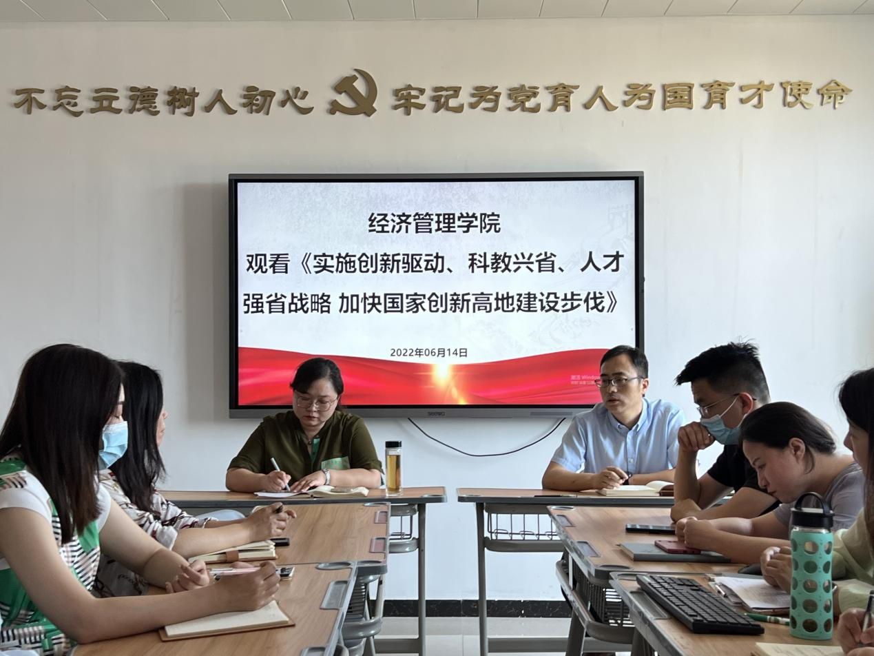 为深入贯彻落实省委“能力作风建设年”活动要求,聚焦实施“十大战略”,2022年6月14日下午,公司党总支在A505组织观看《实施创新驱动、科教兴省、人才强省战略,加快国家创新高地建设步伐》。会议由党总支书记李兆楠主持。