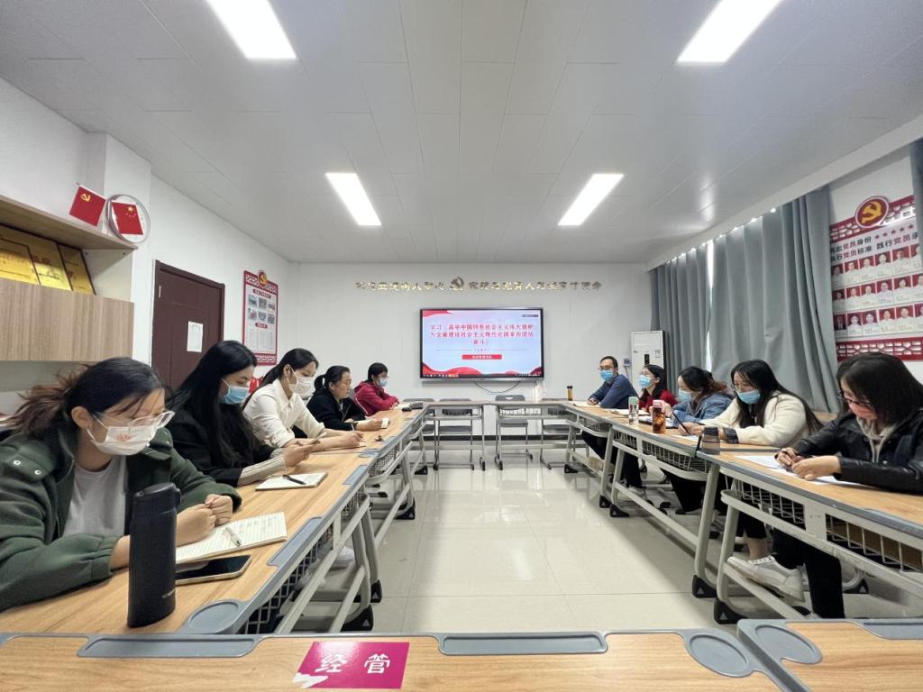 10月18日下午,公司党总支在郑州校区A505、开封校区B306同步进行十月份第二次政治理论学习会,集中学习中国共产党第二十次全国代表大会开幕会中习近平总书记代表十九届中央委员会向大会作的报告《高举中国特色社会主义伟大旗帜 为全面建设社会主义现代化国家而团结奋斗》及习近平总书记文章《坚持人民至上》,共同学习《习近平谈治国理政》第四卷《习近平生态文明思想学习纲要》《习近平经济思想学习纲要》《全面从严治党向基层延伸》等部分内容。全体教师参加,会议由党总支书记李兆楠主持。