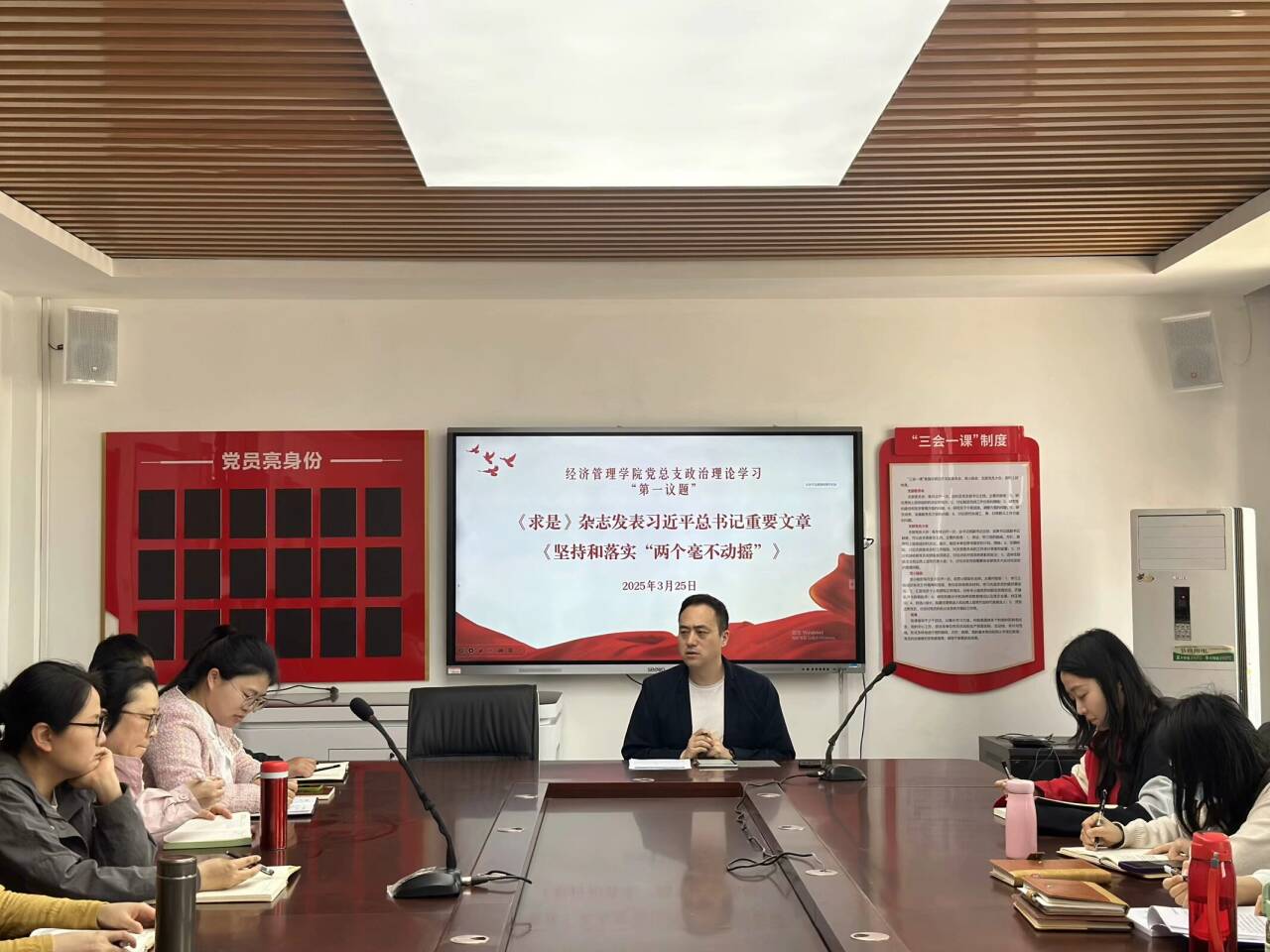3月25日,公司党总支在郑州校区 B502 会议室召开2024-2025学年春季第四次政治理论学习会议。会议由公司经理张召哲主持,全体教师参加。