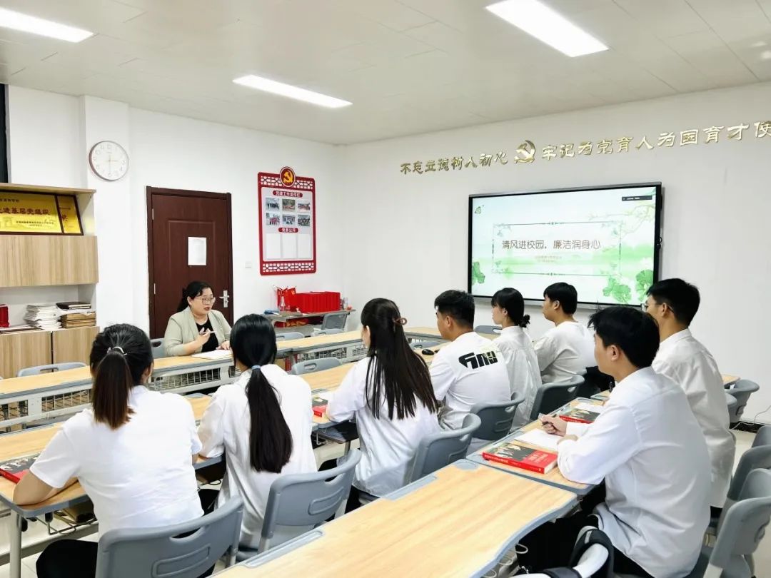 为提升毕业生党员廉洁自律意识,增强党性修养,推动主题教育入脑入心,5月17日下午,公司党总支书记李兆楠在A505为2023届毕业生党员讲授“清风进校园,廉洁润身心”专题党课。